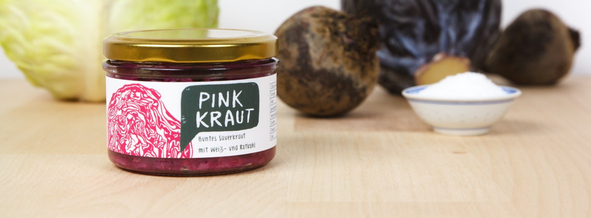 Das Pinkkraut kommt von unseren Kreationen dem klassischen Sauerkraut am nächsten – außer dass es pink ist! Für die schöne Farbe sorgt Rotkohl, der den Weißkohl in diesem Kraut ergänzt. Geschmacklich abgerundet wird unser Pinkkraut durch knackige Äpfel, die dem Kraut eine schöne Fruchtigkeit und leichte Süße verleihen.